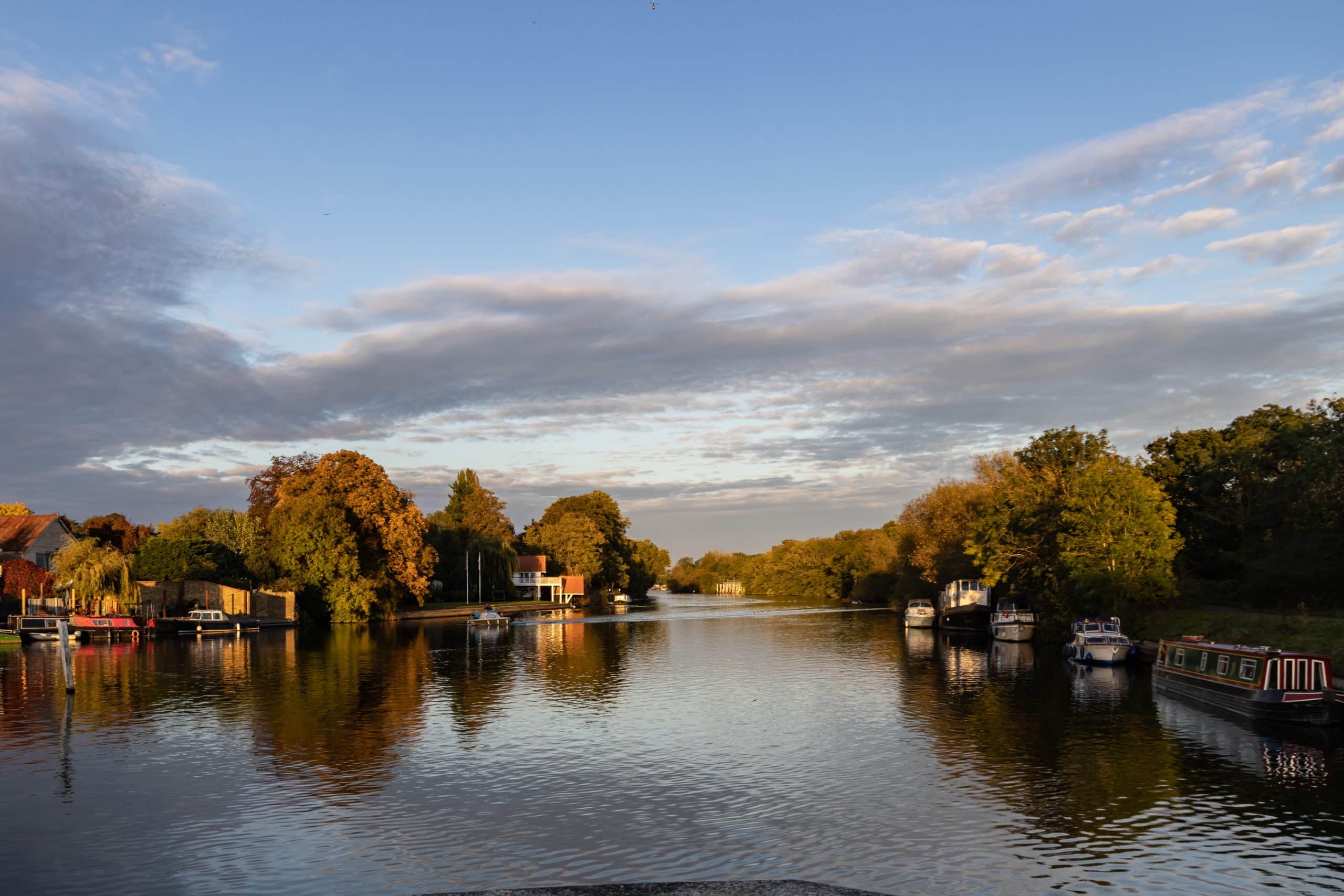 This is a terrific trip that starts outside Tesco in Sunbury with the 557 bus then meandering its way over the M3 past Upper Halliford railway station into Shepperton then down the pretty High Street to the War Memorial with its floral displays. The 557 then travels alongside the greenery of Manor Park and through Shepperton Village Square with the delightful church on the left, looming high over the banks of the Thames, looking onto Desborough Island.