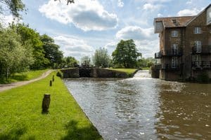 Through Shepperton old village then it’s out onto the open Chertsey Road, fields either side and with a tantalising glimpse of Dumsey Meadow before the Thames emerges and its over the famous river at Chertsey Bridge. There’s a real historical feel as Chertsey High Street is then devoured, with its old fashioned array of terraced houses, colourful cottages and a rollercoaster from Thorpe Park on the horizon.